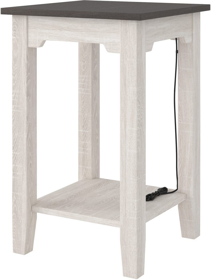 Raise the bar on modern farmhouse design with this versatile side table. Sporting a two-tone, gray and antiqued white color scheme, this piece makes a statement wherever it lands. With its dual USB charging ports, this home essential is packed with possibilities. Assembly required for this product.Read More