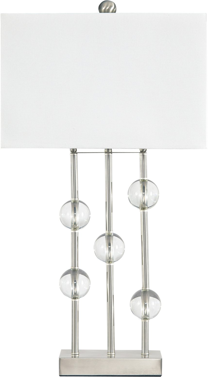 Add an extra layer of ambience to your home with the brilliant, light-catching, clear baubles of the Jaala table lamp. This accent light balances spaces with a white, rectangular hardback shade for a warm, comforting glow.
