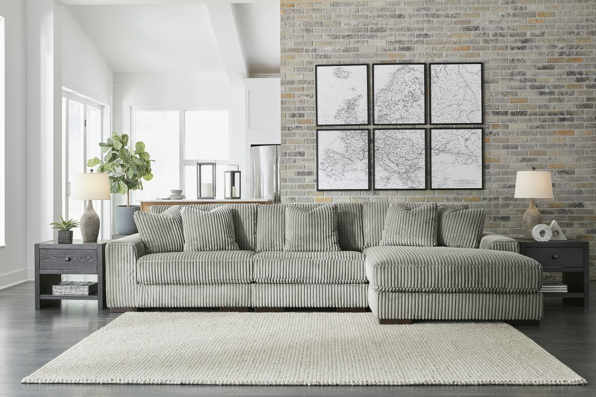 Plush and posh. Showcase your eye for on-trend texture with the statement-making cord upholstery of this sectional with chaise. Its stunningly soft fabric entices in a warm neutral hue, complementing contemporary color palettes. Sink into the cushions and plan to stay a while this cozy living room.Read More