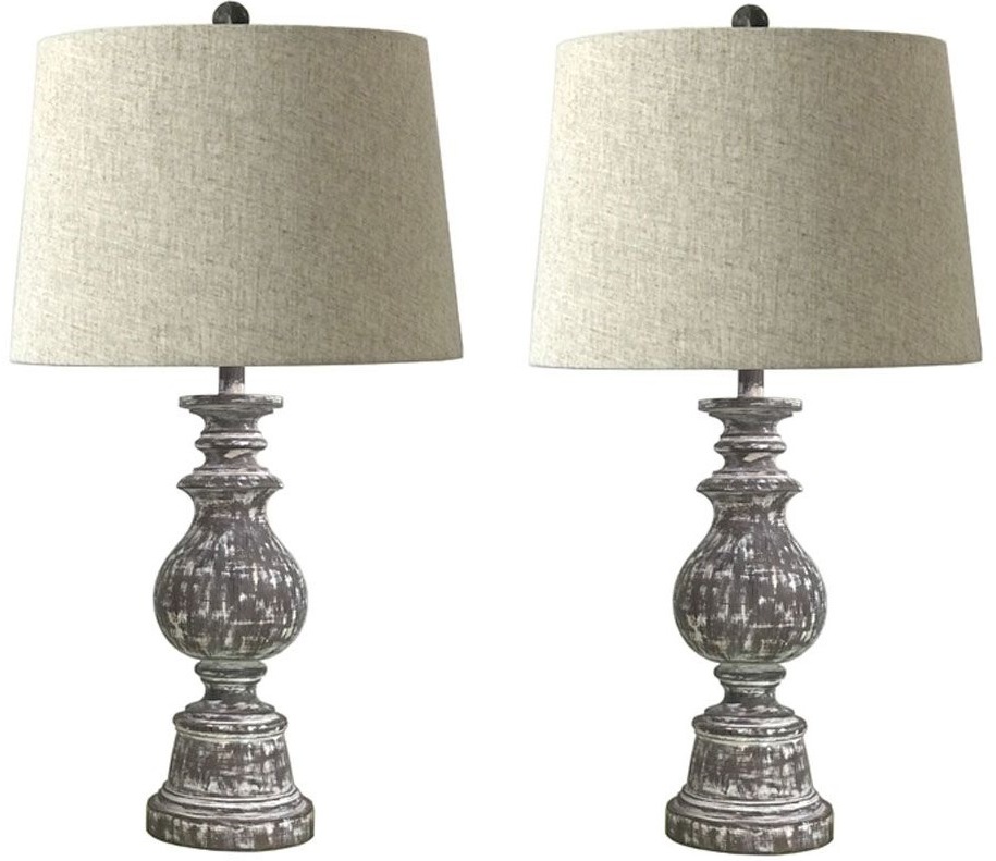 Let the shabby shine in your home with this table lamp. The antiqued brown finish faux wood carries the well-worn look of a treasured item passed through the generations. The modified drum shade adds a clean modern edge to this totally traditional light.Read More