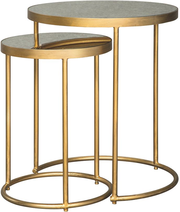 The Majaci set of 2 nesting accent tables features a gold-finished and a mirrored glass top.