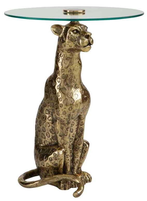 If big and bold is your vibe, you’ll go wild for this accent table. Its leopard base in an antiqued goldtone finish exudes old Hollywood appeal, adding a touch of opulence to everyday living. Radiating an aura of exquisite flair, this showstopping piece fills your home with elaborate elegance.Read More